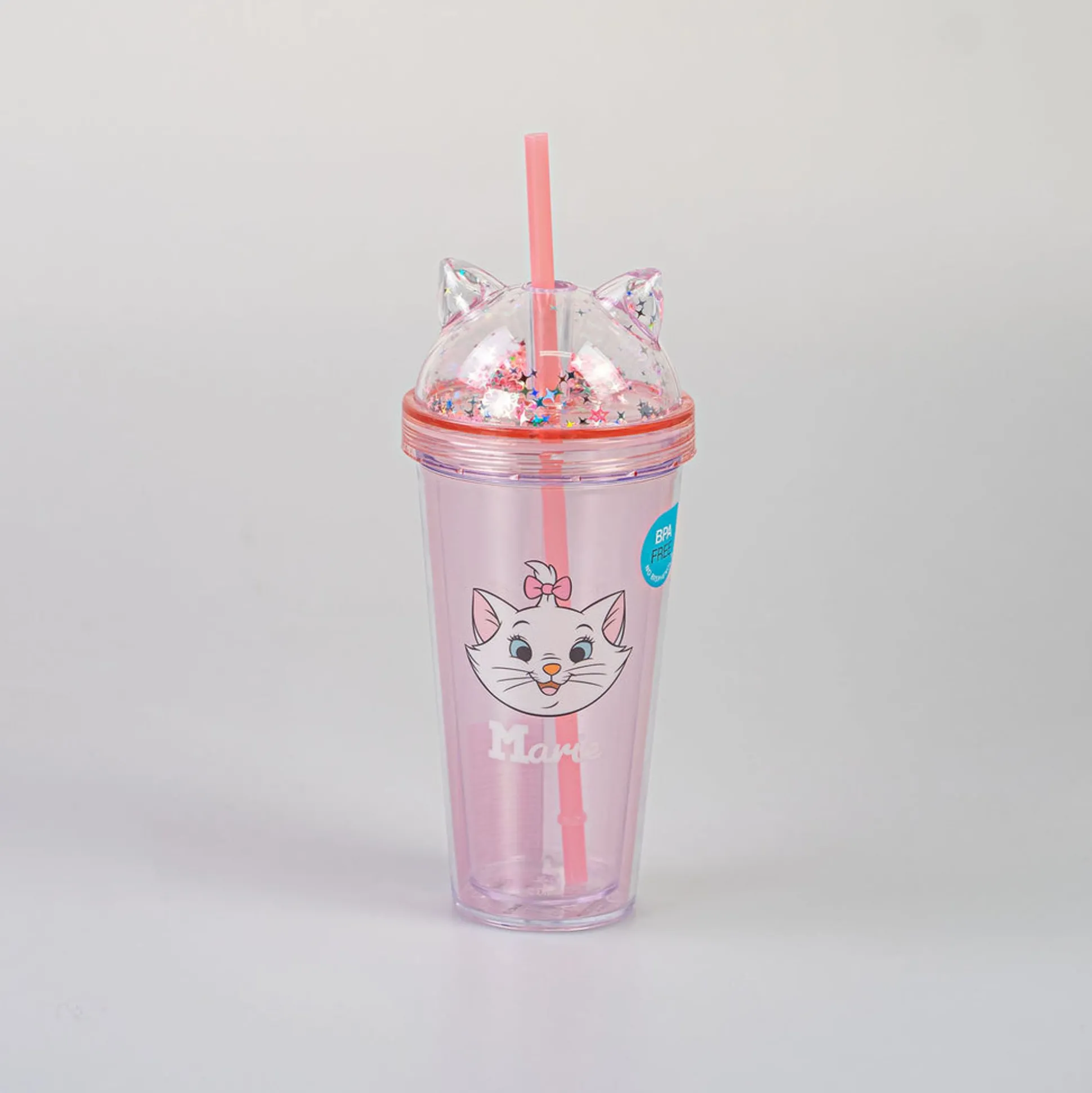Borraccia Rosa Con Cannuccia Della Collezione Aristogatti Di Disney Con Orecchie E Viso Di Marie.