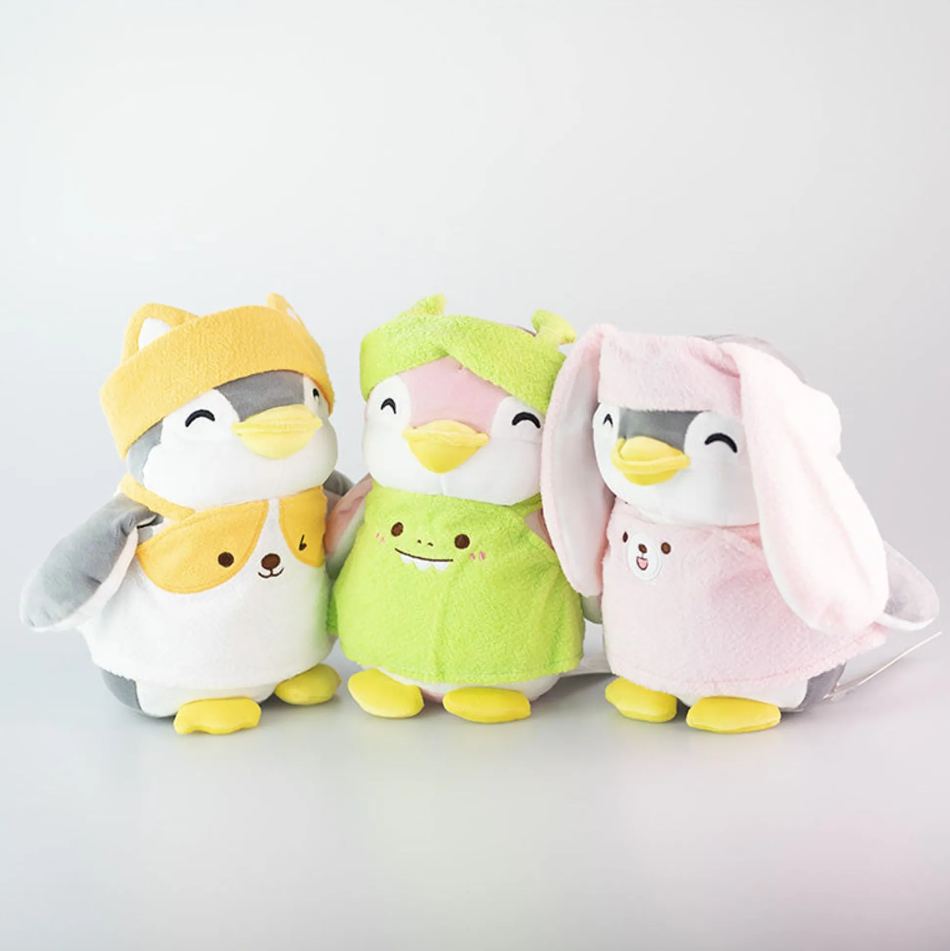 Morbido E Carino Peluche Di Penpen Rosa Vestito Da Rana Verde.