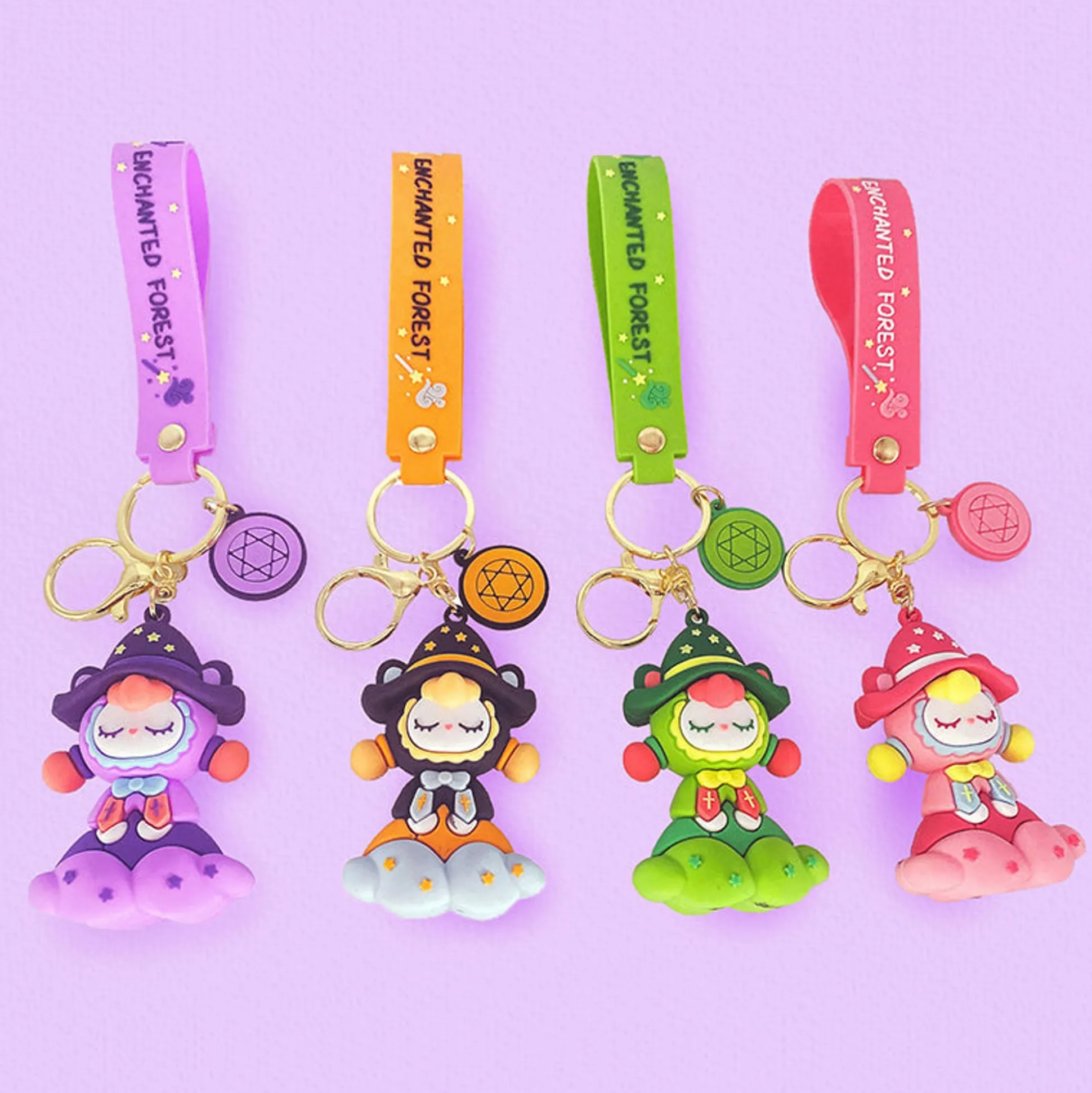 Portachiavi Foresta Incantata Disponibile In 4 Varianti: Lilla, Arancio, Verde E Rosa.