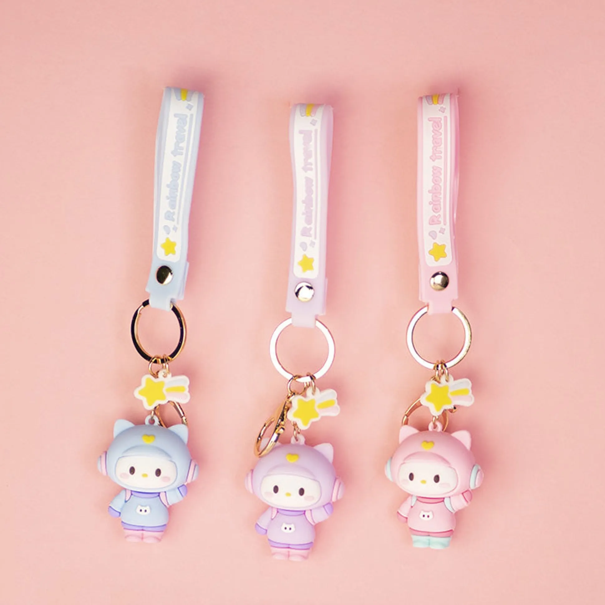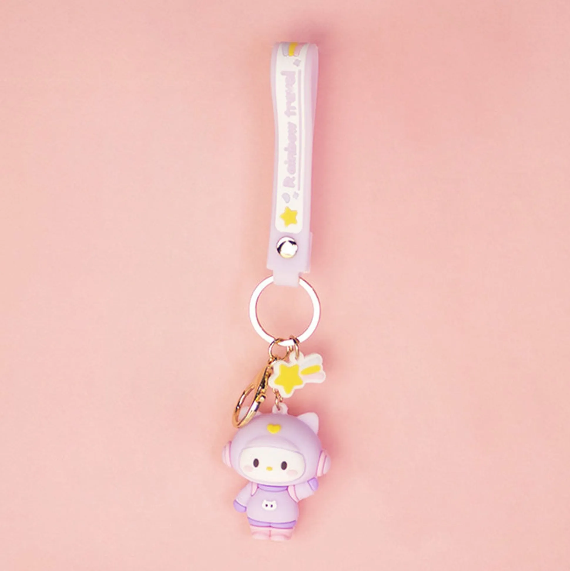 Fantastico Portachiavi Gattino Spaziale, Disponibile In Tre Varianti Di Colore: Lilla, Rosa E Azzurro.