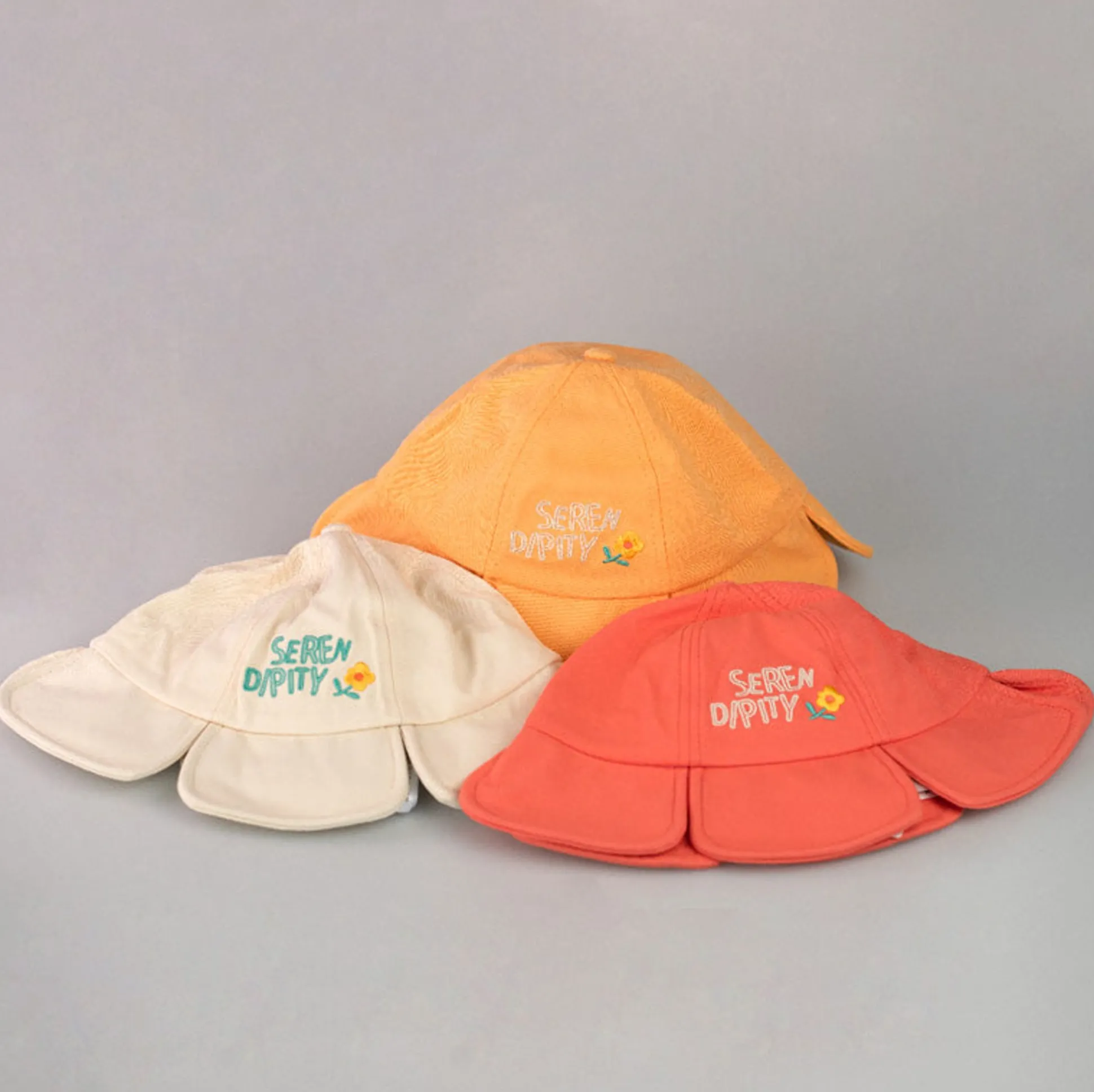 Cappellino Per Bambini Serendipity Color Ocra, Con Fiore Giallo In 3D.
