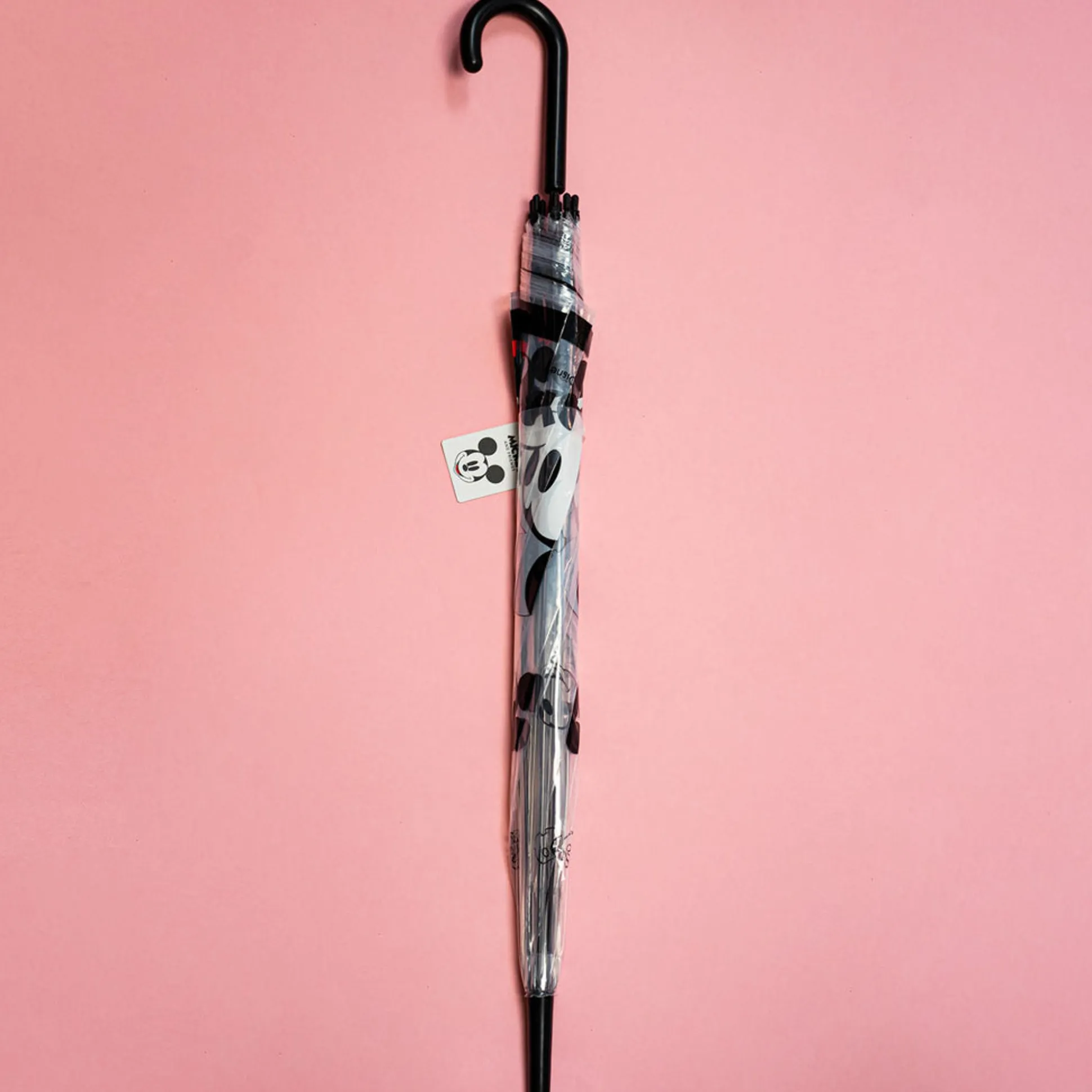 Ombrello Grande Trasparente Con Manico Nero E Disegni Mickey Mouse Della Collezione Disney.
