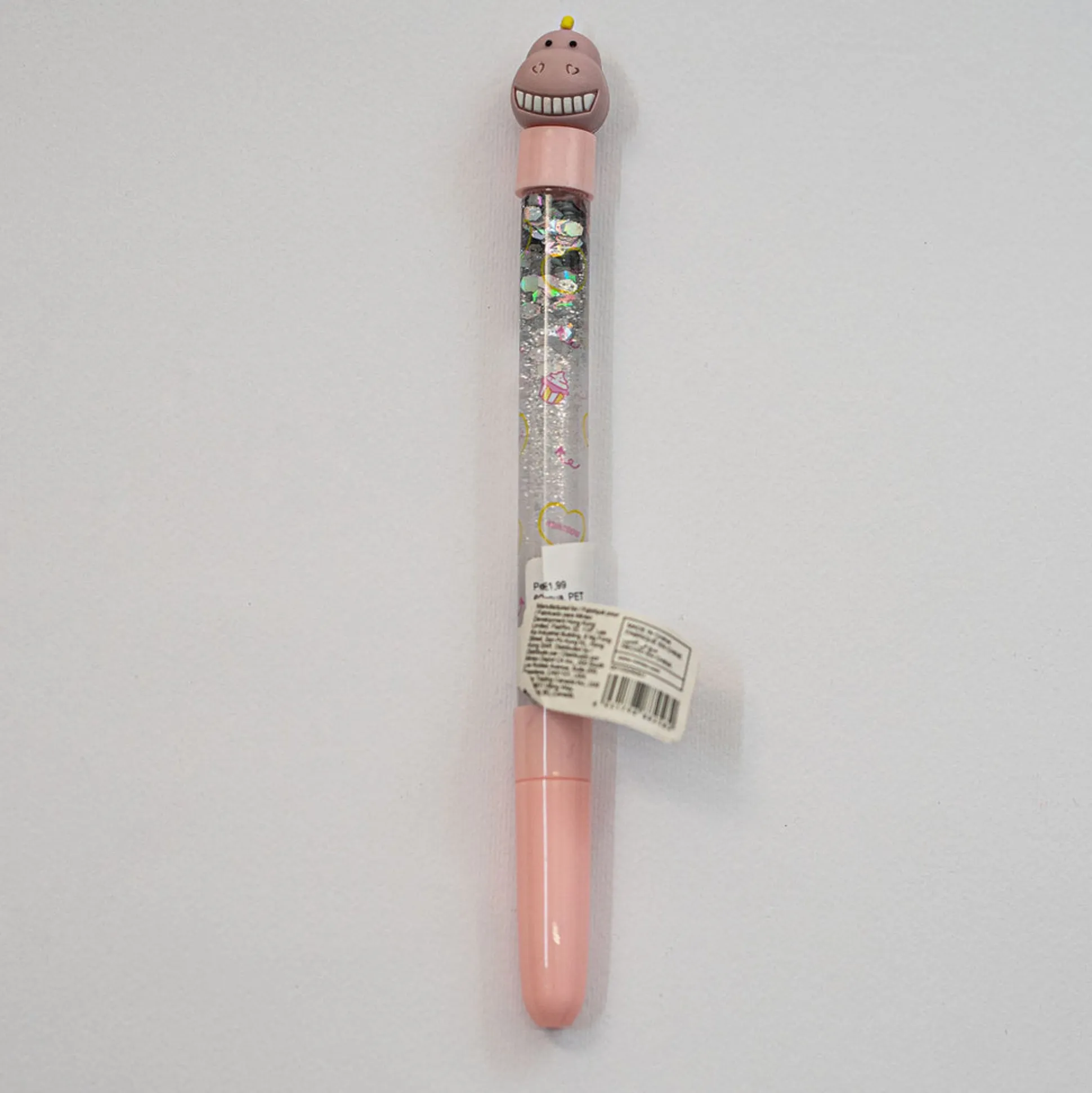 Penna Da 0.5 Mm Della Collezione Mini Family Con Struttura In Colore Rosa E Decorazione Glitterata Che Si Muove All’Utilizzo.