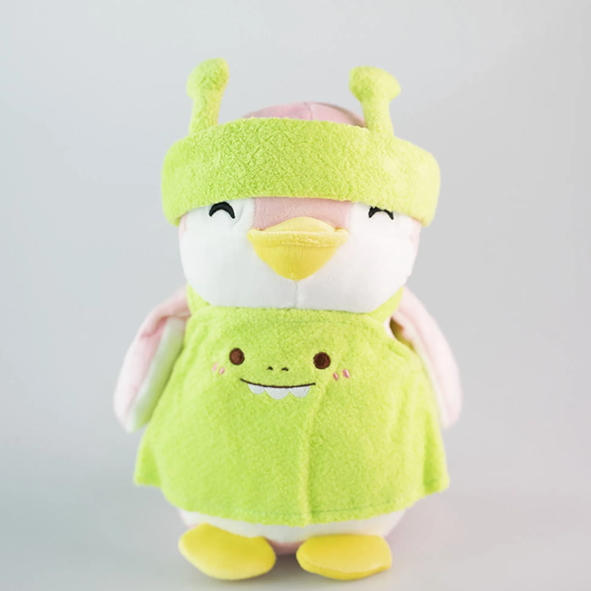 Morbido E Carino Peluche Di Penpen Rosa Vestito Da Rana Verde.