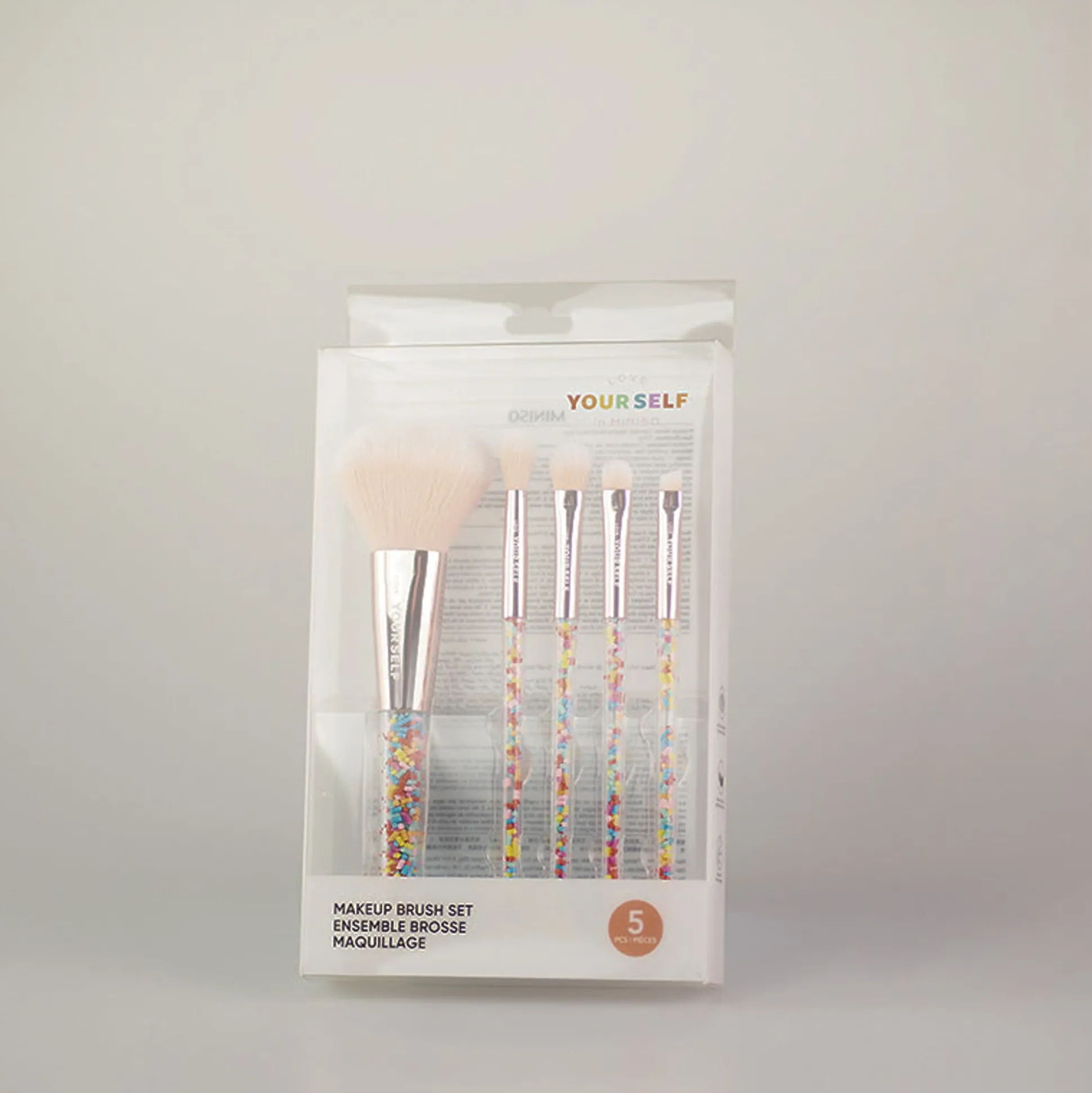 Set Di 5 Pennelli Rosa Della Collezione Love Youself Con Confetti Multicolor.